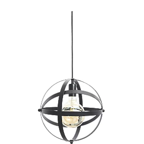 Decorative black globe shaped pendant with fully adjustable 1.5m fabric cable allowing for varied installation height. Ideal for kitchen areas and living spaces.