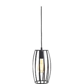 Decorative black pear shaped cage pendant with fully adjustable 1.5m fabric cable allowing for varied installation height. Ideal for kitchen areas and living spaces.